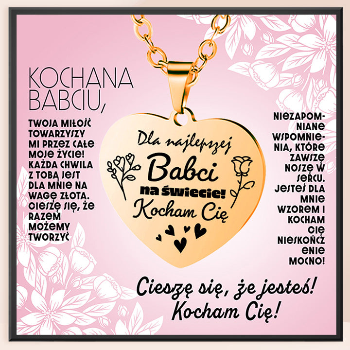 Naszyjnik z dedykowanym grawerem to wyjątkowy prezent dla Babci. Dzięki naszej starannej i bardzo precyzyjnej technice, możesz uchwycić piękne chwile w biżuterii, którą Twoja Babcia będzie mieć zawsze przy sobie. Unikalny prezent, który jest wyrazem szczerych uczuć!