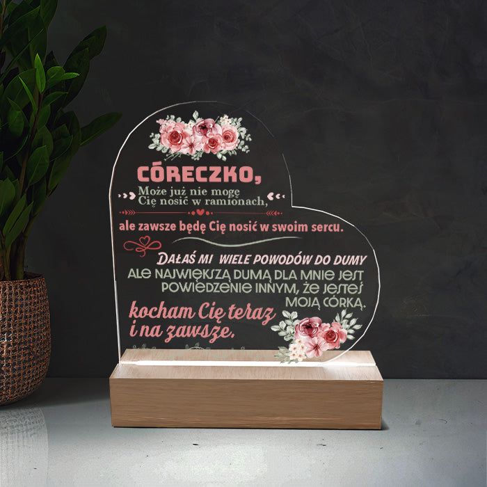 Dla Córki - Ramka serce LED z grawerem