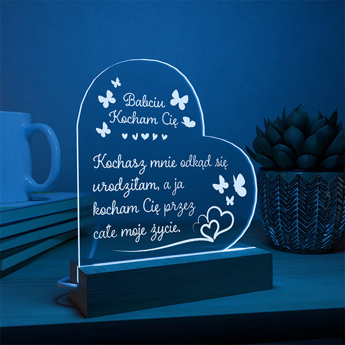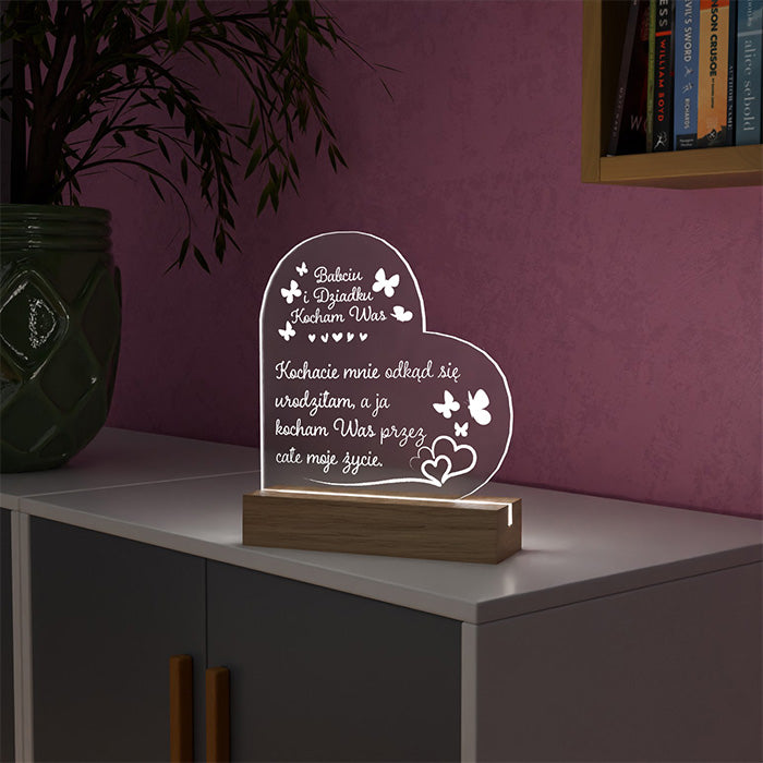 Szukasz wyjątkowego prezentu dla swoich dziadków? Oto coś, co z pewnością wywoła u nich uśmiech i wzruszenie – ramka z podświetleniem LED i poruszającym serce grawerem. Ta elegancka ramka, osadzona na solidnej, drewnianej podstawce, to nie tylko ozdoba, ale również niezapomniane wspomnienie.