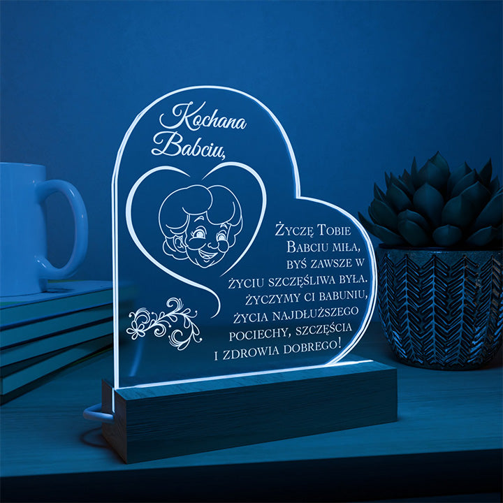 Szukasz wyjątkowego prezentu dla swoich dziadków? Oto coś, co z pewnością wywoła u nich uśmiech i wzruszenie – ramka z podświetleniem LED i poruszającym serce grawerem. Ta elegancka ramka, osadzona na solidnej, drewnianej podstawce, to nie tylko ozdoba, ale również niezapomniane wspomnienie.