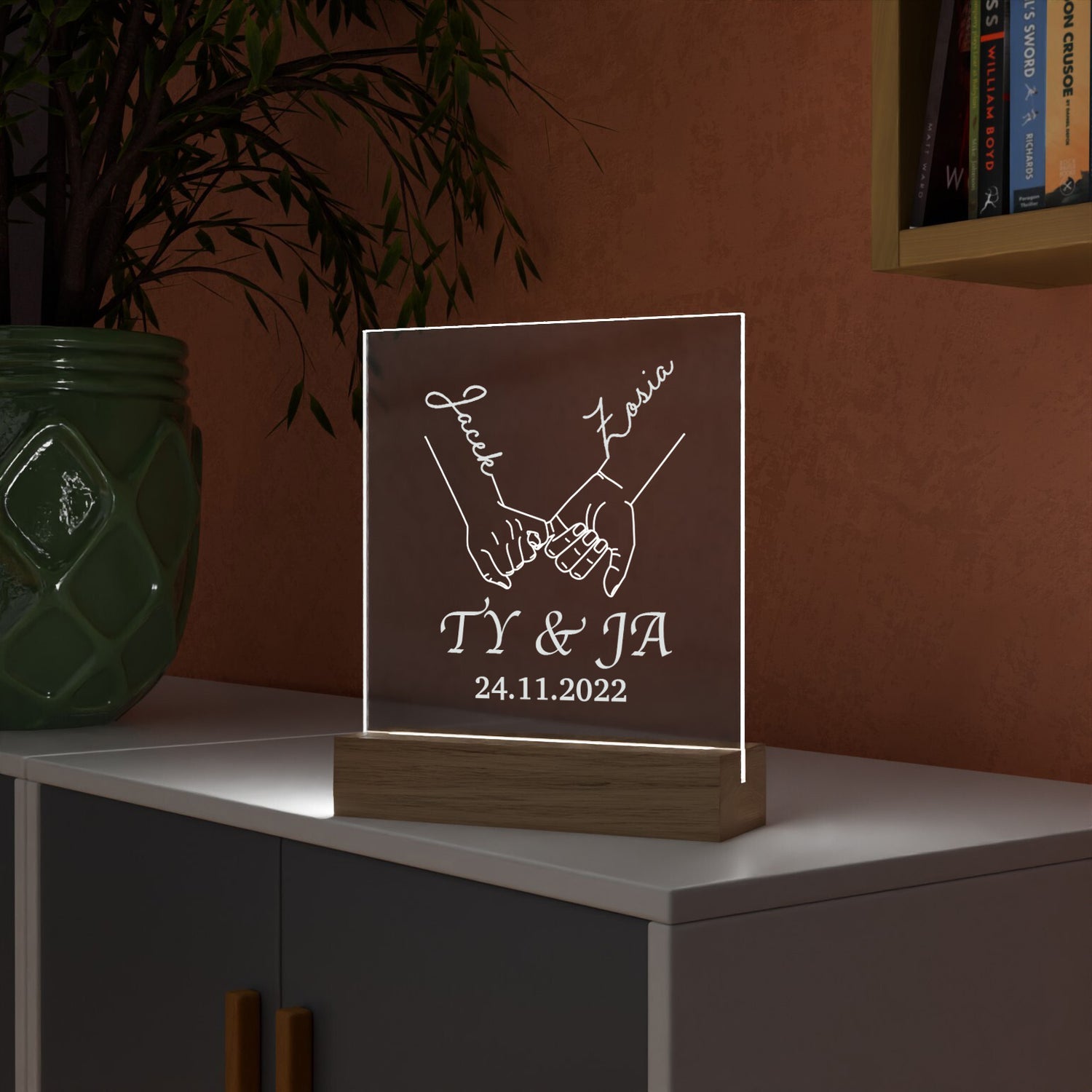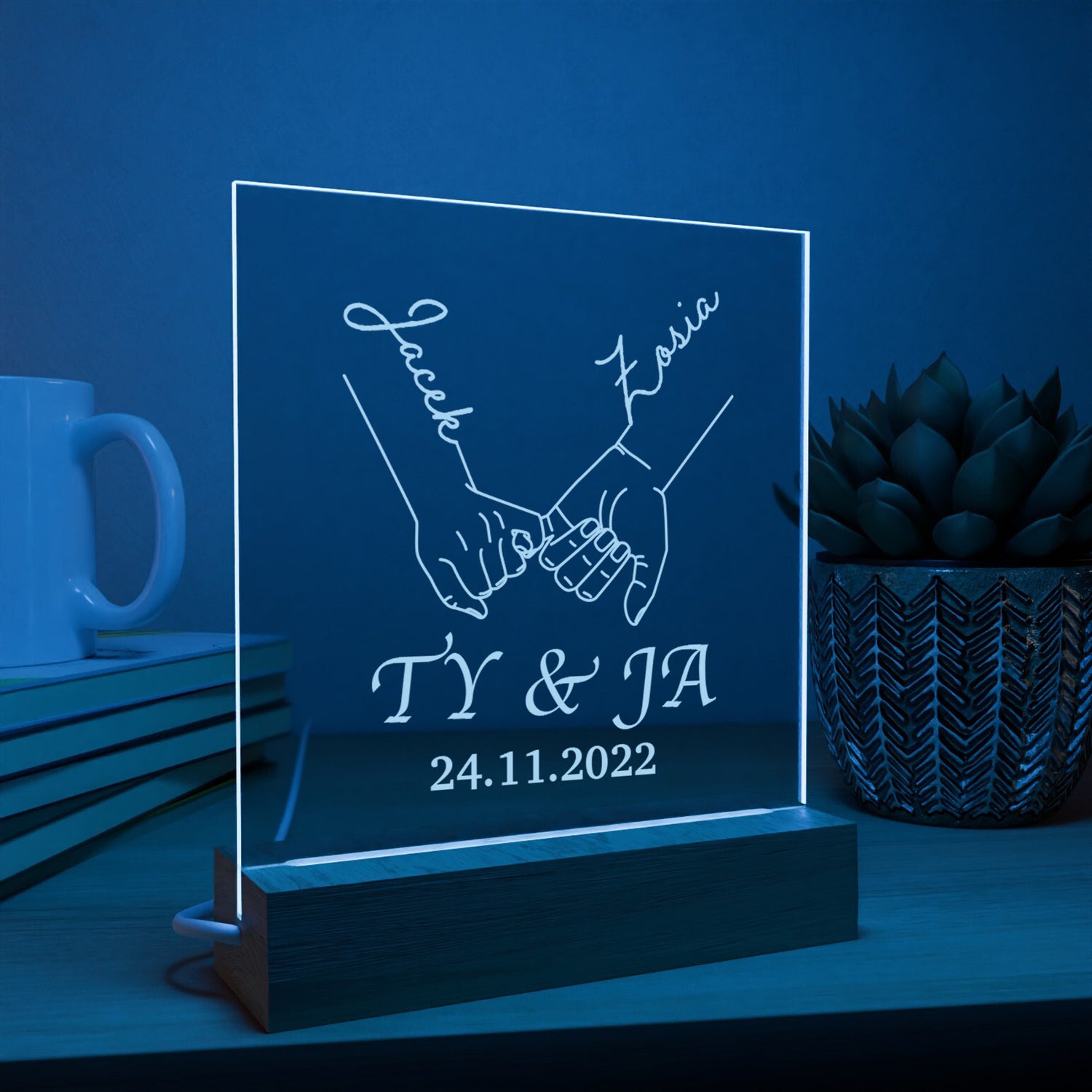 Szukasz wyjątkowego prezentu dla drugiej połówki? Oto coś, co z pewnością wywoła u niej uśmiech i wzruszenie – ramka z podświetleniem LED i poruszającym serce grawerem. Ta elegancka ramka, osadzona na solidnej, drewnianej podstawce, to nie tylko ozdoba, ale również niezapomniane wspomnienie.